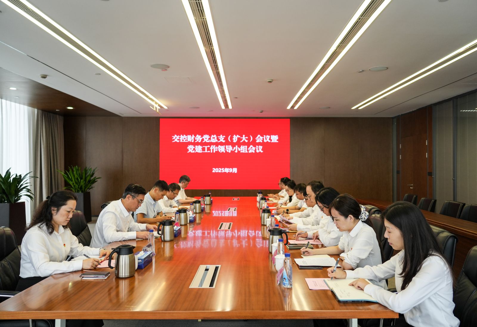 9月29日,江苏交控财务公司召开党总支(扩大)会议暨党建工作领导小组会议,深入学习习近平总书记关于作风建设的重要指示精神,全面落实中央、省委、江苏交控党委党的建设工作领导小组会议要求,对巩固拓展学习教育成果、推进作风建设常态化长效化进行部署,进一步统一思想、明确方向,为公司高质量发展筑牢思想根基,提供作风保障。公司党总支书记、董事长杨水明主持会议并讲话,公司党总支领导班子成员、江苏交控党委监督二组组长出席会议。